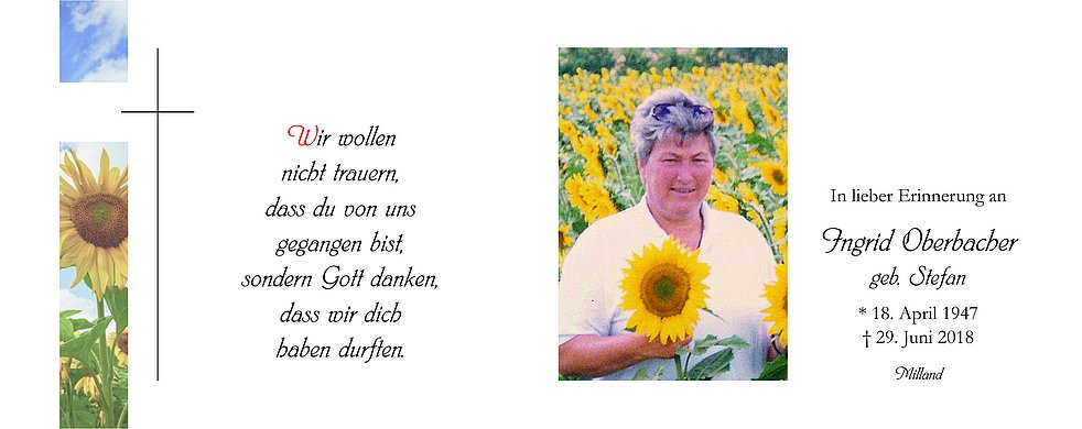 Anstelle von Blumen, möge man für wohltätige Zwecke spenden.