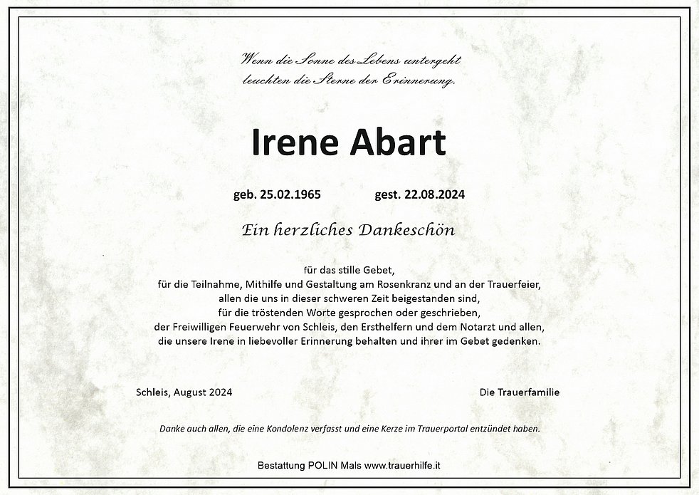 In Liebe und Dankbarkeit und mit vielen schönen Erinnerungen