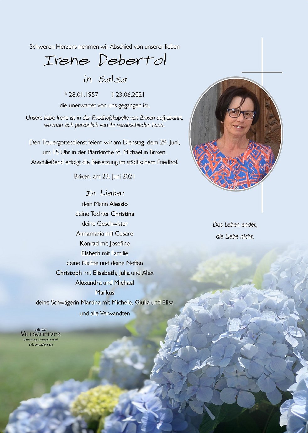 Unsere aufrichtige Anteilname am Tod von Irene, unsere ehemalige Schulkollegin. Wir sind sehr betroffen.