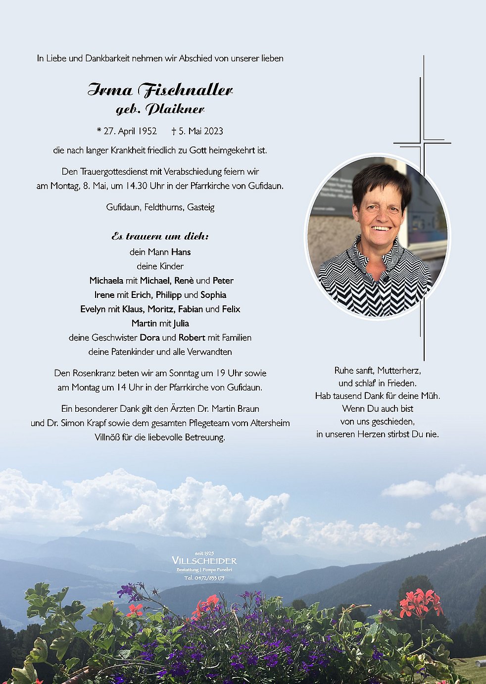 Trauerfeier: 08.05. - 14:30 Uhr Gufidaun