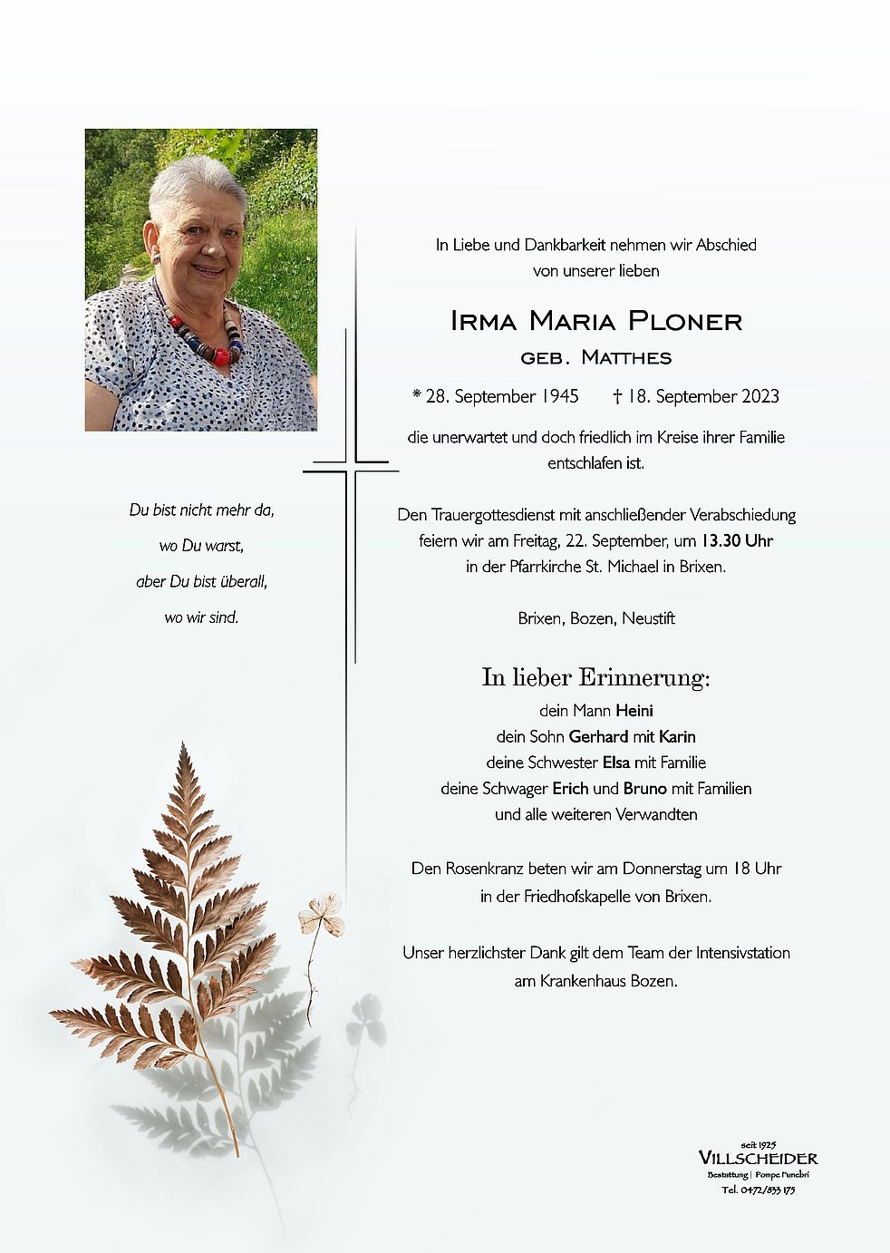 Begräbnisgottesdienst: 22.09. - 13:30 Uhr Brixen