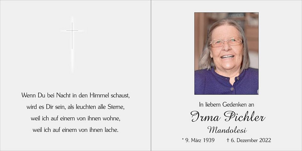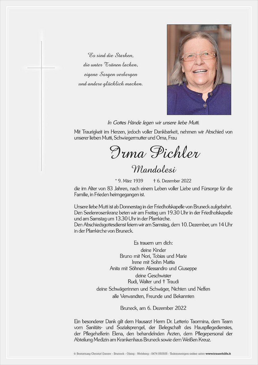 Unsere liebe Mutti ist ab Donnerstag in der Friedhofskapelle von Bruneck aufgebahrt.