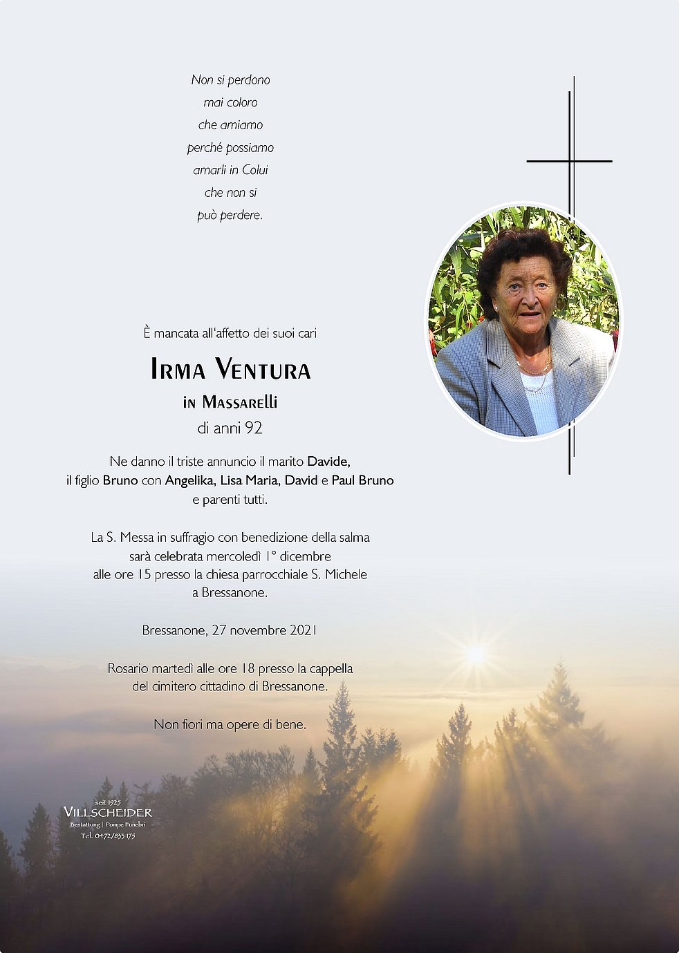 Trauerfeier: 01.12. - 15:00 Uhr Brixen; Bressanone