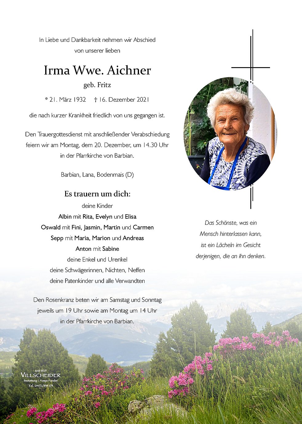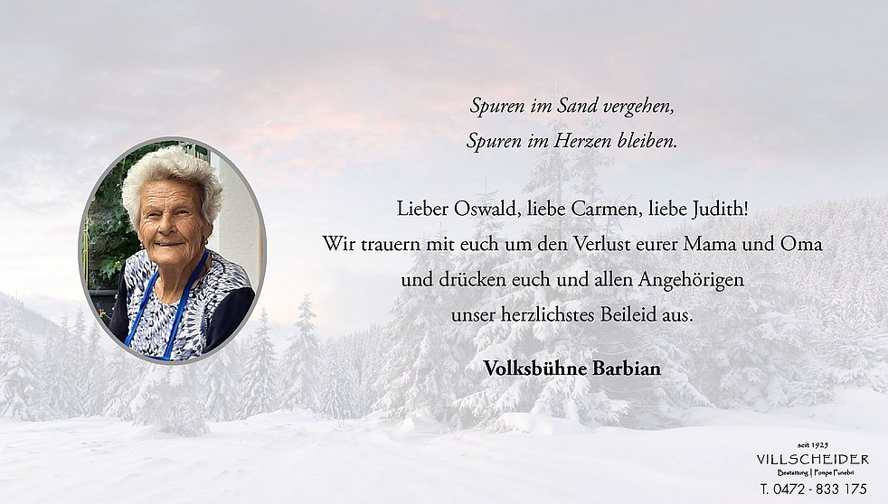 Liebe Irma.Gerne erinnern wir uns für die schöne Zeit die wir zusammen auf der Alm verbringen durften.Danke dafür. Den Hinterbliebenen unser aufrichtiges Beileid