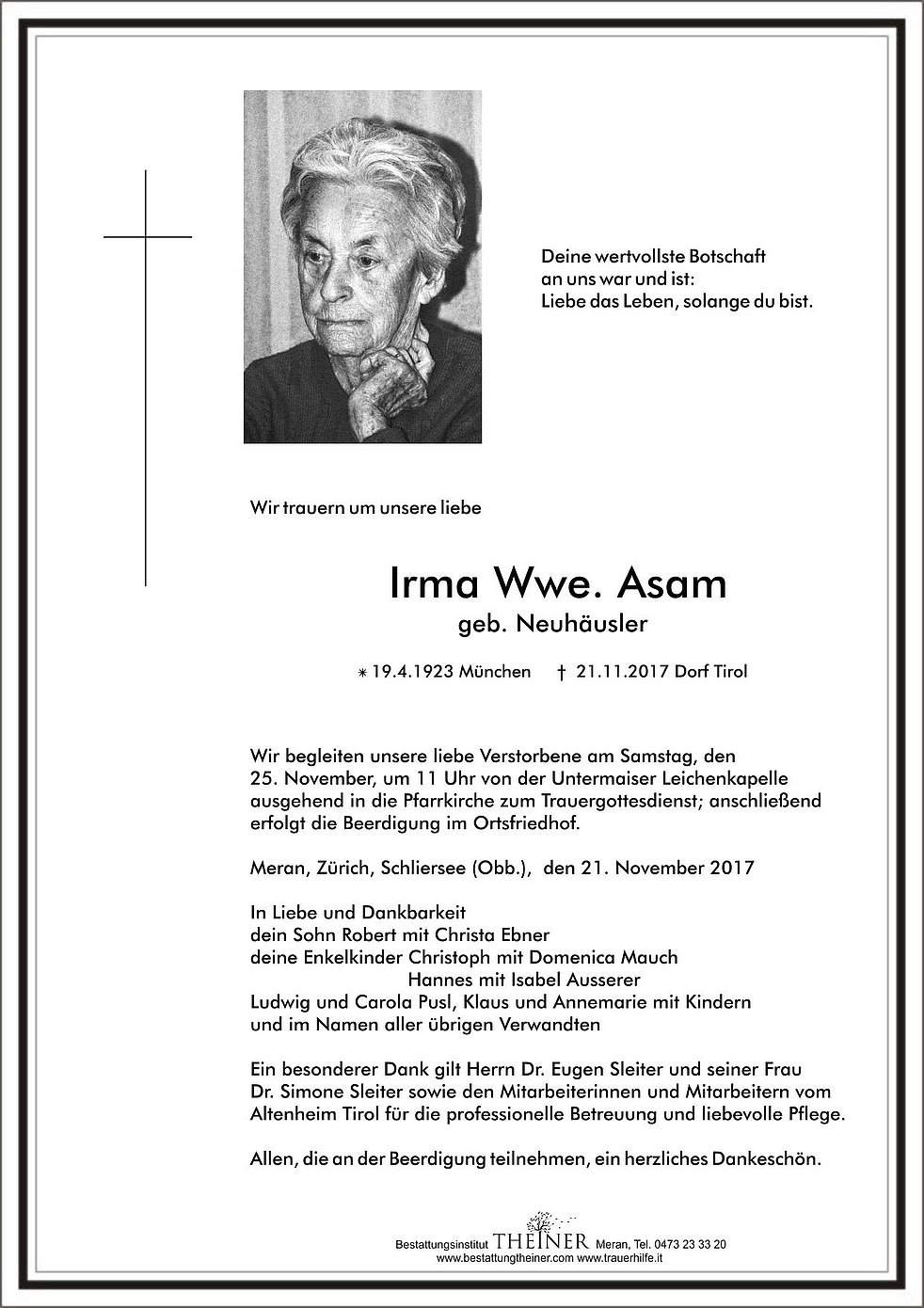 * 19.4.1923 München † 21.11.2017 Dorf Tirol