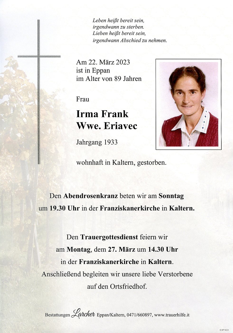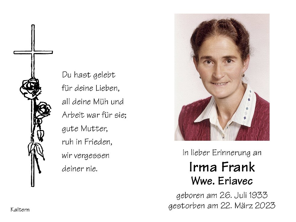 Irma Wwe. Eriavec geb. Frank