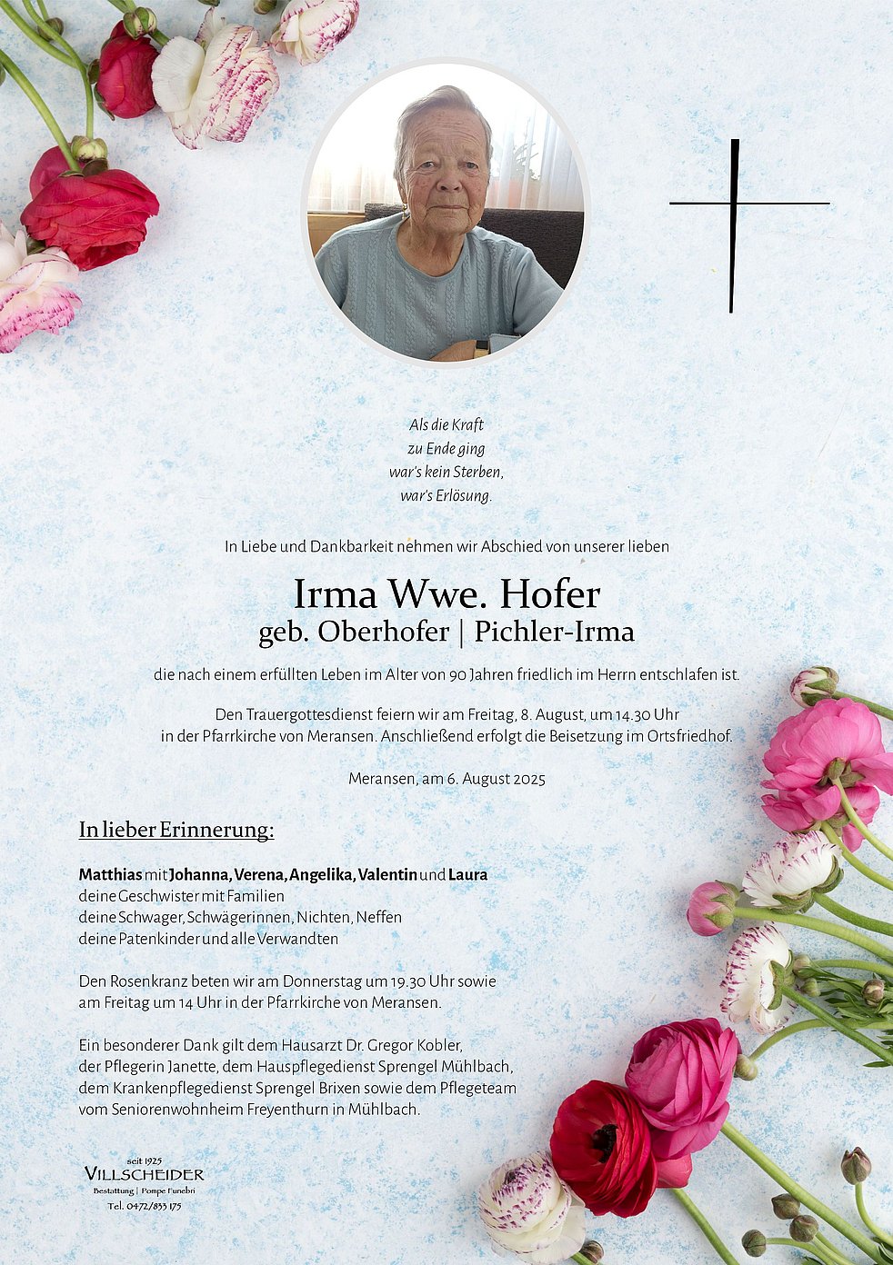 Trauerfeier: 08.08. - 14:30 Uhr Meransen
