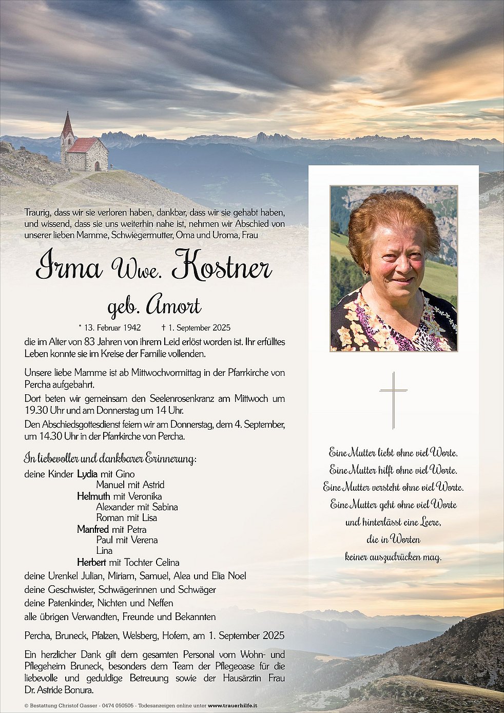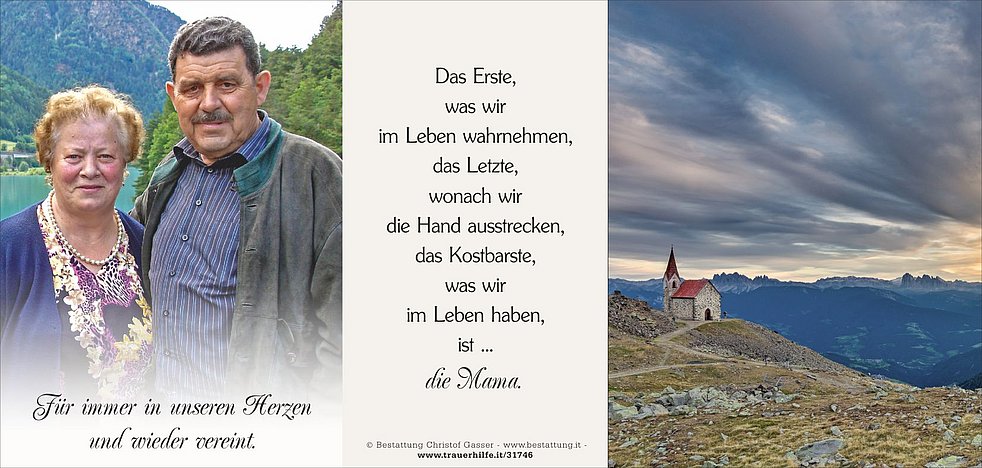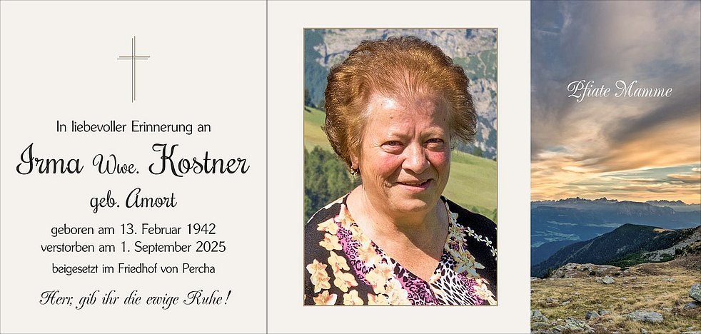 Unsere liebe Mamme ist ab Mittwochvormittag in der Pfarrkirche von Percha aufgebahrt.
