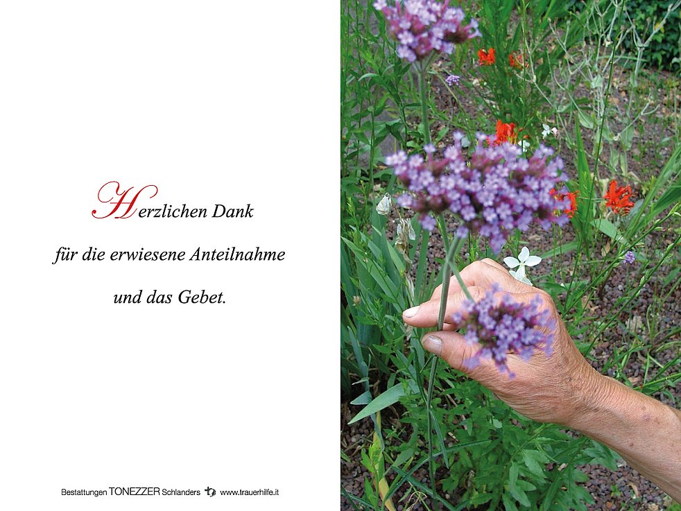 Ein besonderer Dank gilt dem Hausarzt Dr. Christian Hofer sowie dem gesamten Team vom Altenheim Schluderns für die liebevolle und fürsorgliche Betreuung.