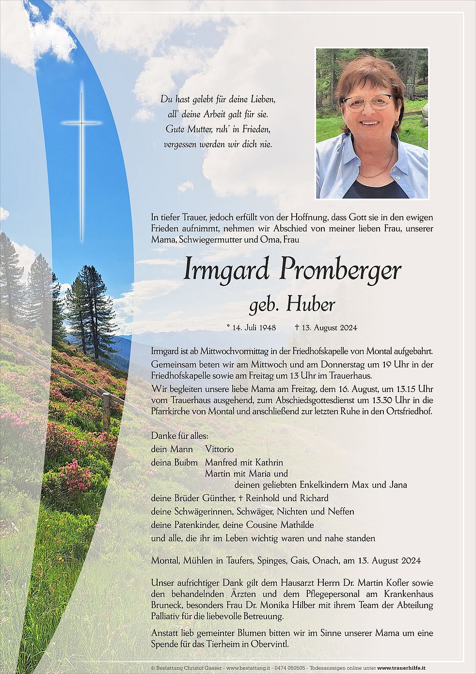 Irmgard ist ab Mittwochvormittag in der Friedhofskapelle von Montal aufgebahrt.