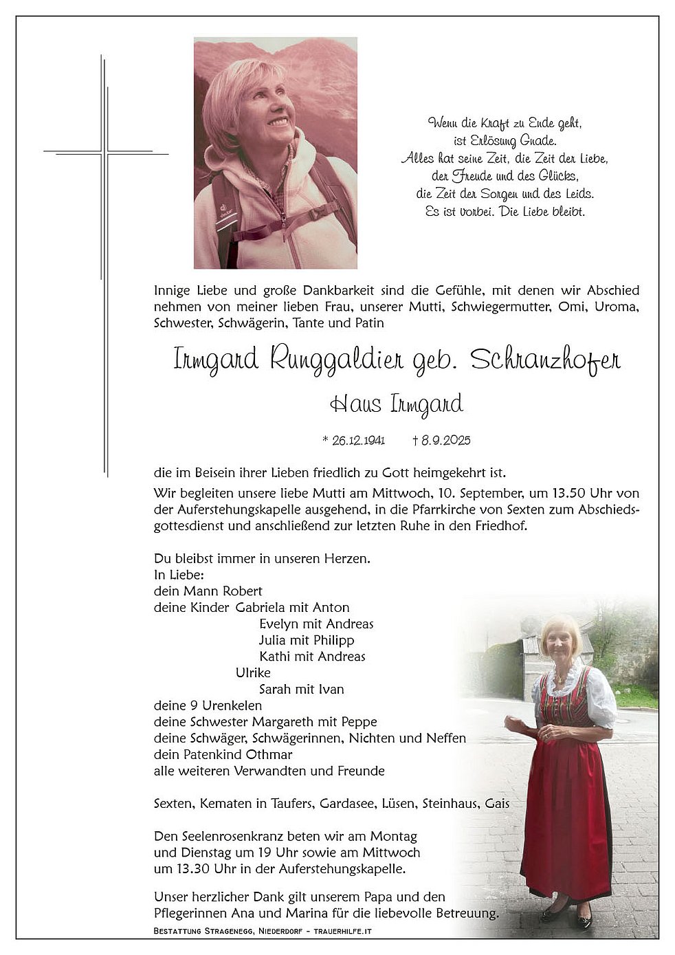Liebe Ulli,mir mechtn enk fa Herzen inso Beileid aussprechen,fi enkon groassn Voluscht. Enkra Mama wor a tolla Frau,koltitse fescht in enkon Herz ❤