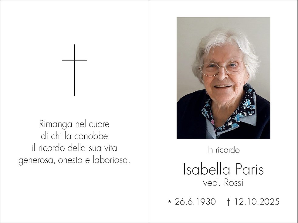La S. Messa in suffragio verrà celebrata mercoledì 15 ottobre alle ore 9.30 nella chiesa di Tre Santi con successivo funerale alle ore 10.30 partendo dall’entrata principale del cimitero di Oltrisarco.