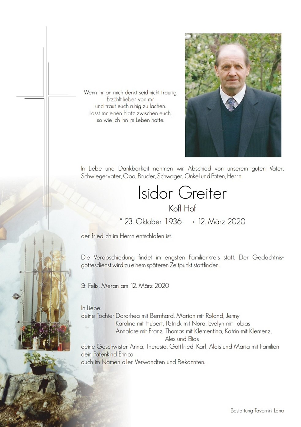 Liebe Dorothea, liebe Karoline und liebe Annalore mit Familien, wir werden euren Tata in lieber Erinnerung behalten!