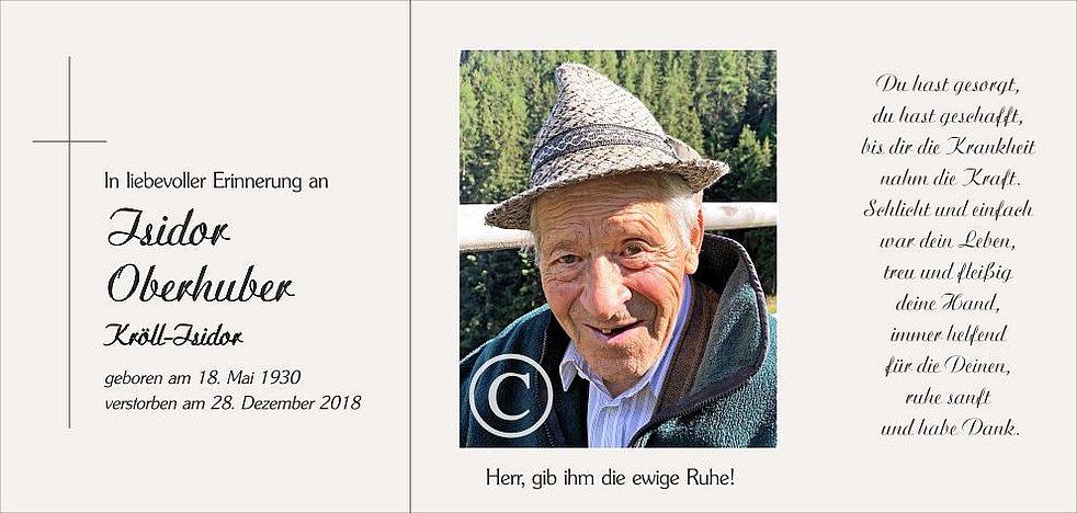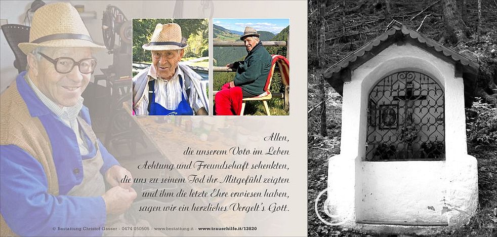 Ein herzlicher Dank gilt dem Hausarzt Dr. Andreas Reichegger, den Sprengelschwestern und allen vom Hauspflege für die liebevolle Betreuung.