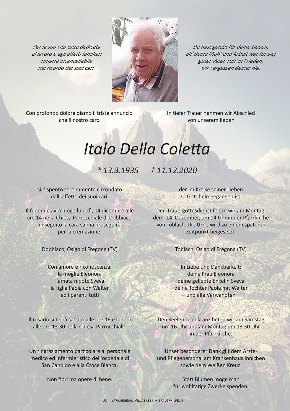 Den Trauergottesdienst feiern wir am Montag, dem 14. Dezember, um 14 Uhr in der Pfarrkirche von Toblach. Die Urne wird zu einem späteren Zeitpunkt beigesetzt.