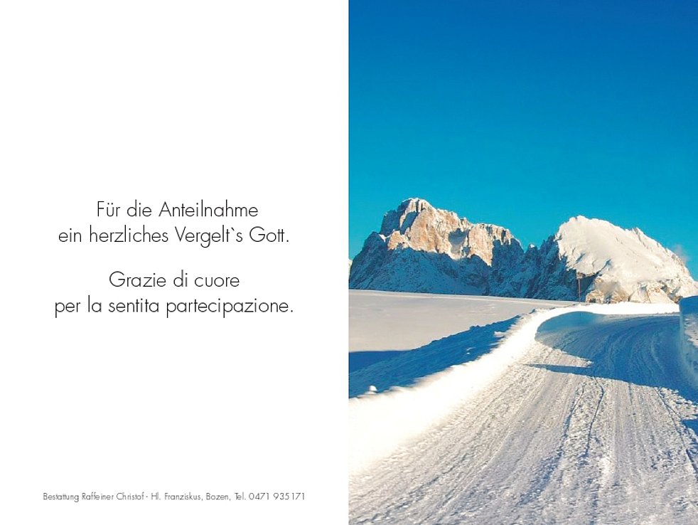 Den Trauergottesdienst mit anschließender Einsegnung feiern wir am Freitag, dem 29. November, um 14.30 Uhr im Dom von Bozen.