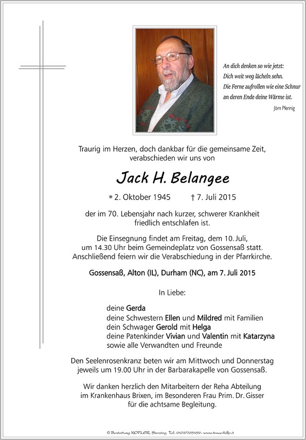 Gossensaß, Alton (IL), Durham (NC), am 7. Juli 2015