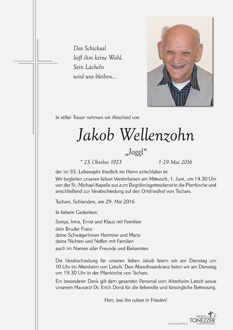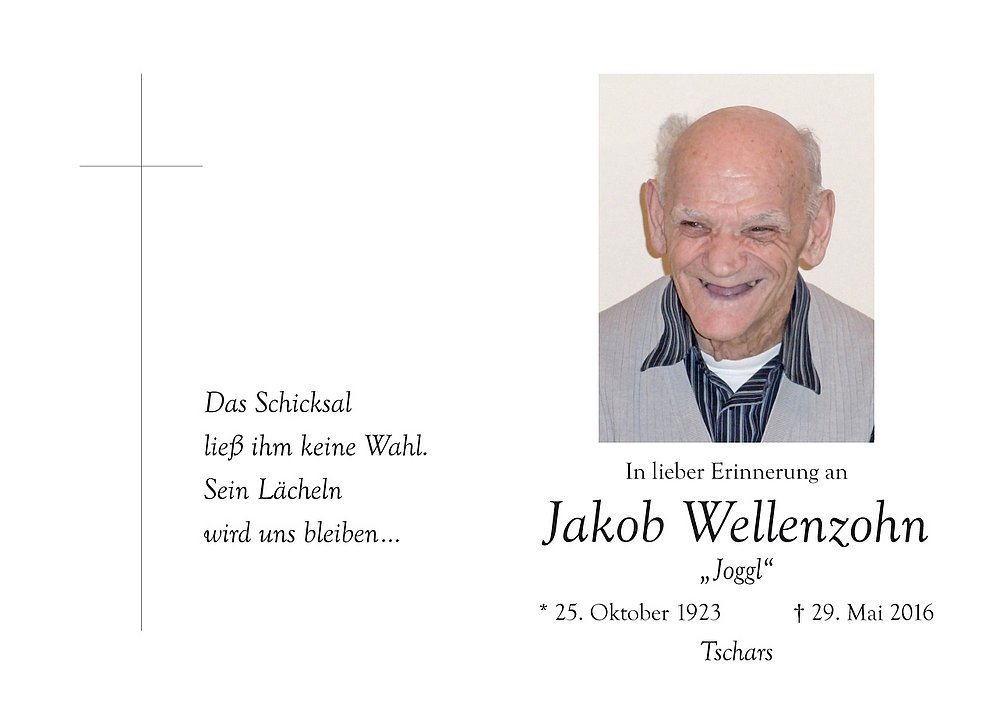 Die Verabschiedung für unseren lieben Jakob feiern wir am Dienstag um 10 Uhr im Altenheim von Latsch.