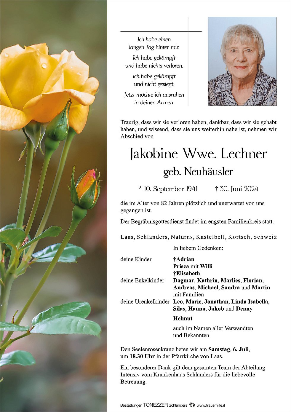 Traurig, dass wir sie verloren haben, dankbar, dass wir sie gehabt haben, und wissend, dass sie uns weiterhin nahe ist, nehmen wir Abschied von