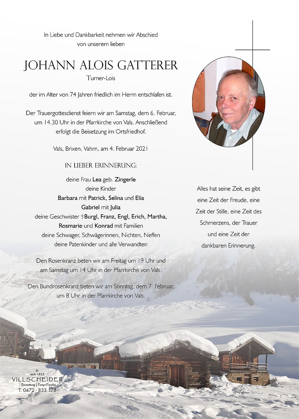 Liebe Familie Gatterer, es macht mich sehr sehr traurig was ich gerade erfahten habe.deinen Mann, euren Vater hab ich sehr gemocht.