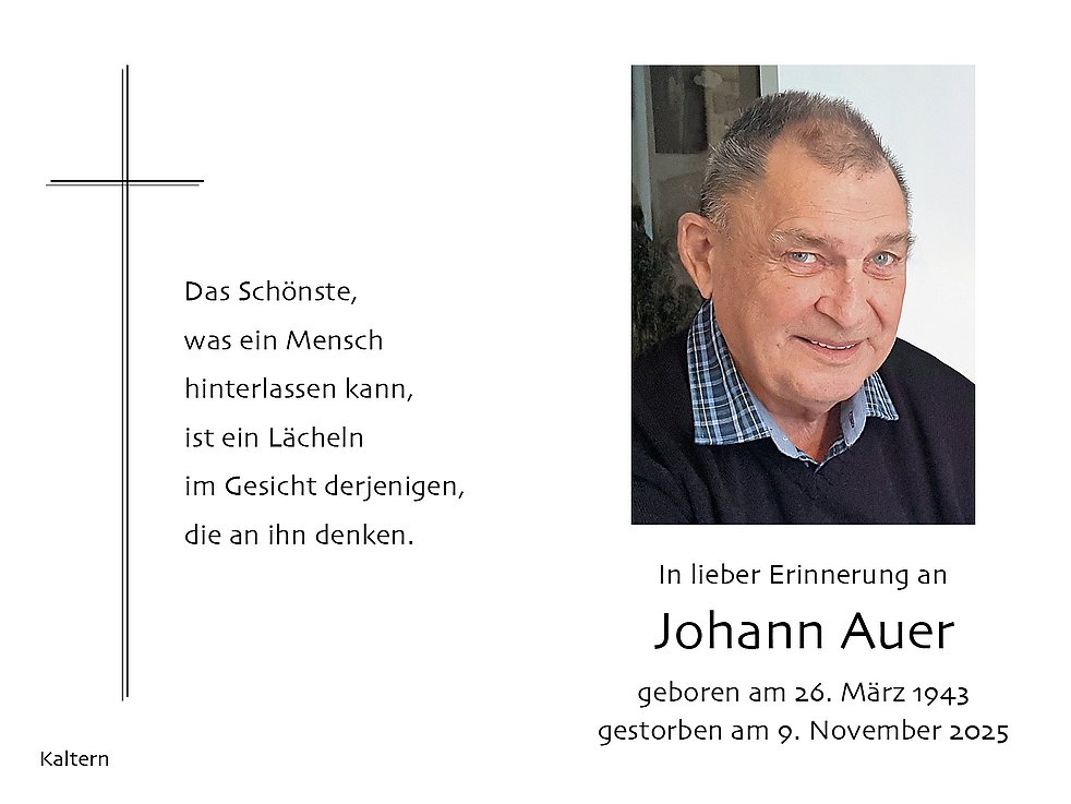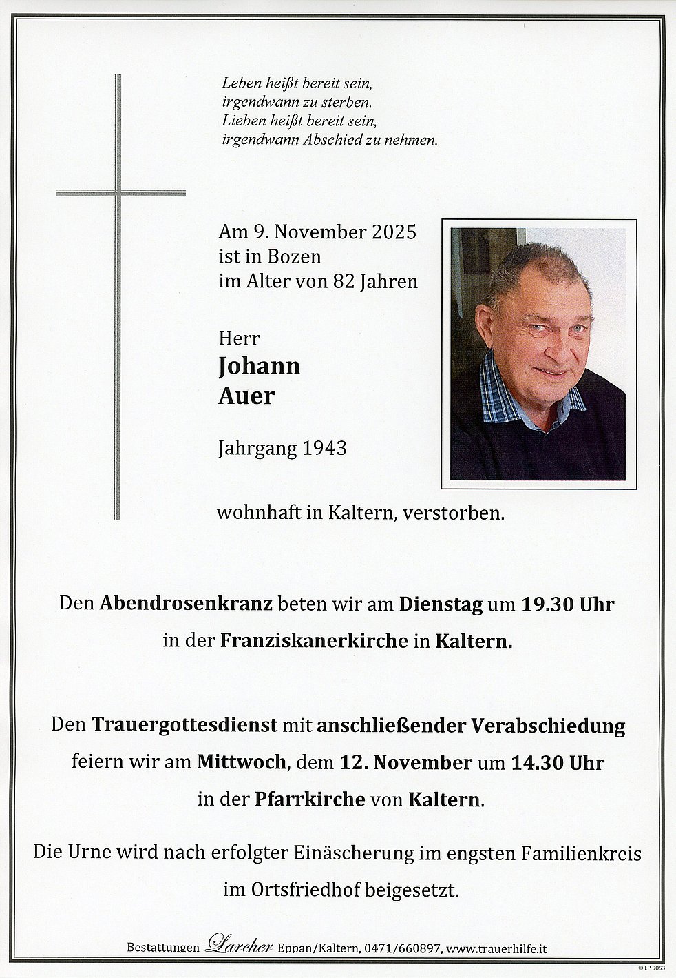 Den Trauergottesdienst mit anschließender Verabschiedung feiern wir am Mittwoch, dem 12. November um 14.30 Uhr in der Pfarrkirche von Kaltern