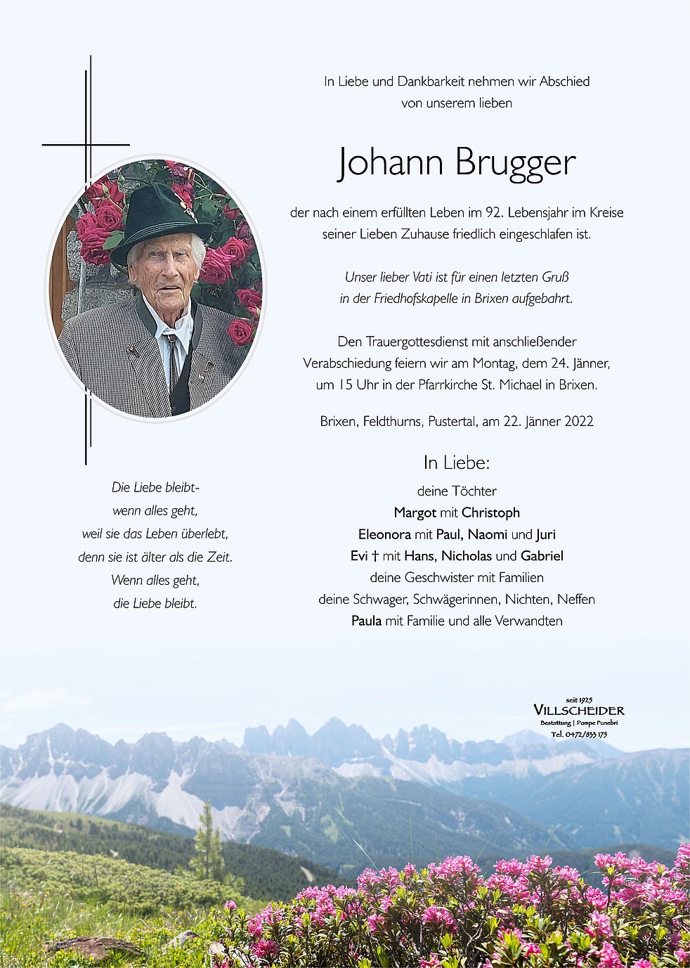 Caro Hans e famiglie Brugger, in questa triste circostanza giunga a Voi tutti, l'espressione del nostro più vivo cordoglio.