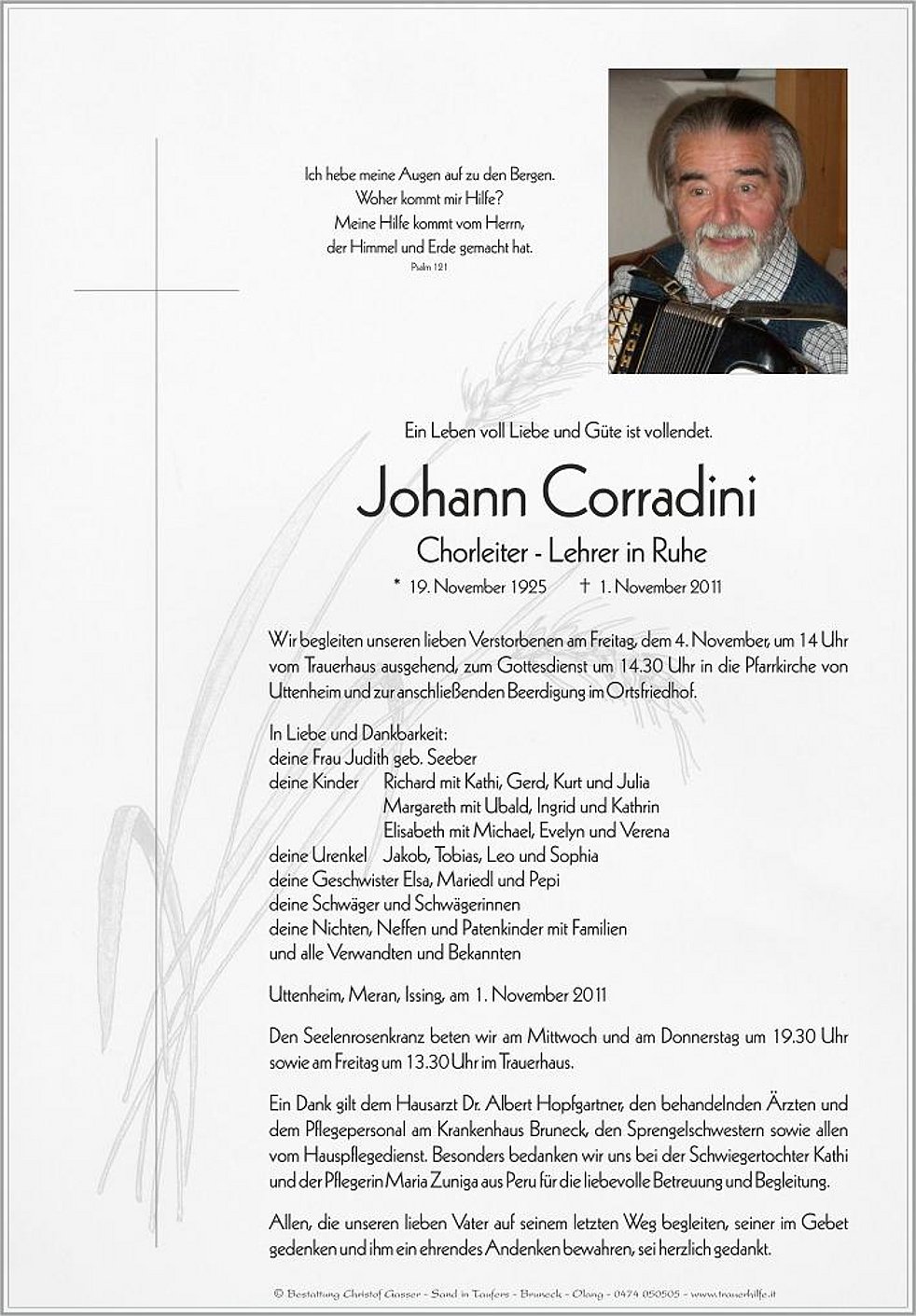Allen, die unseren lieben Vater auf seinem letzten Weg begleiten, seiner im Gebet gedenken und ihm ein ehrendes Andenken bewahren, sei herzlich gedankt.