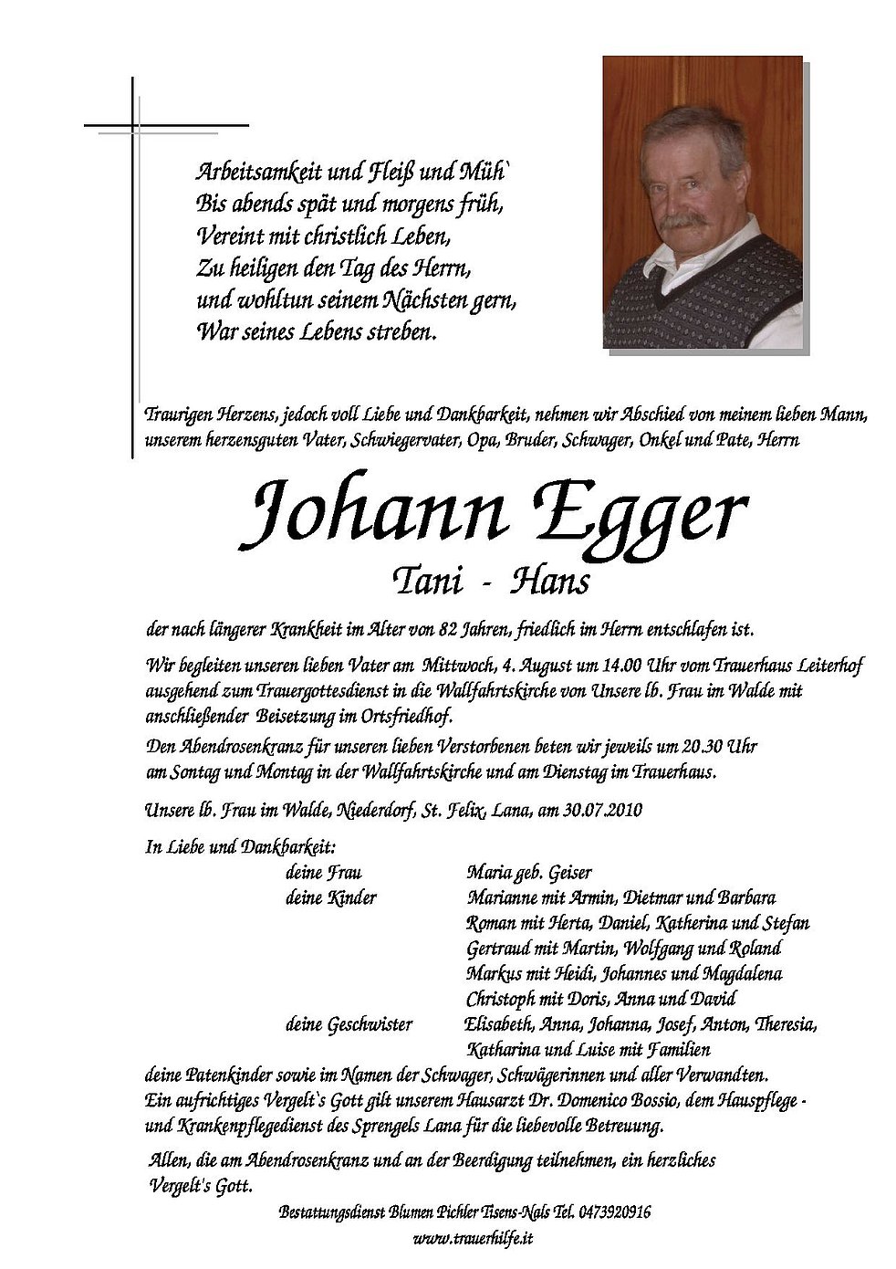 Wir begleiten unseren lieben Vater am Mittwoch, 4. August um 14.00 Uhr vom Trauerhaus Leiterhof