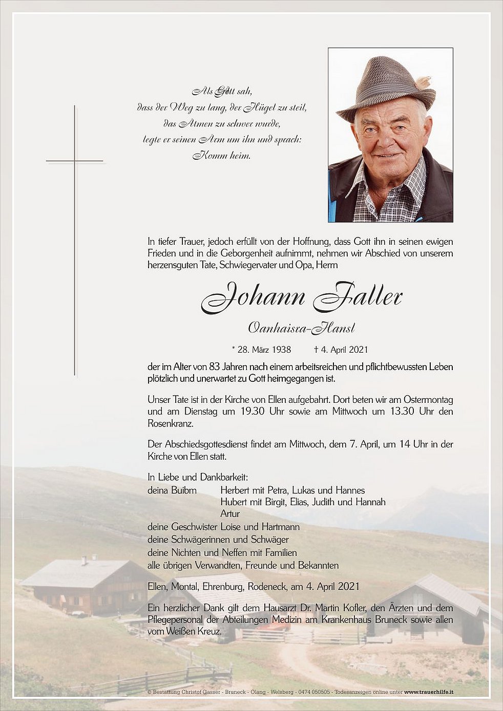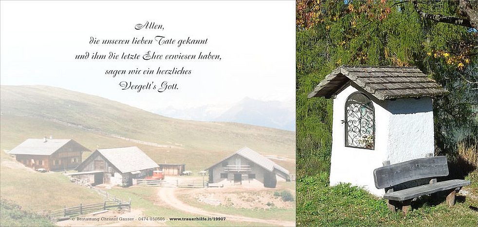 Ein herzlicher Dank gilt dem Hausarzt Dr. Martin Kofler, den Ärzten und dem Pflegepersonal der Abteilungen Medizin am Krankenhaus Bruneck sowie allen vom Weißen Kreuz.