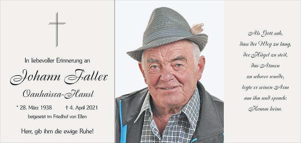 In tiefer Trauer, jedoch erfüllt von der Hoffnung, dass Gott ihn in seinen ewigen Frieden und in die Geborgenheit aufnimmt, nehmen wir Abschied von unserem herzensguten Tate, Schwiegervater und Opa, Herrn