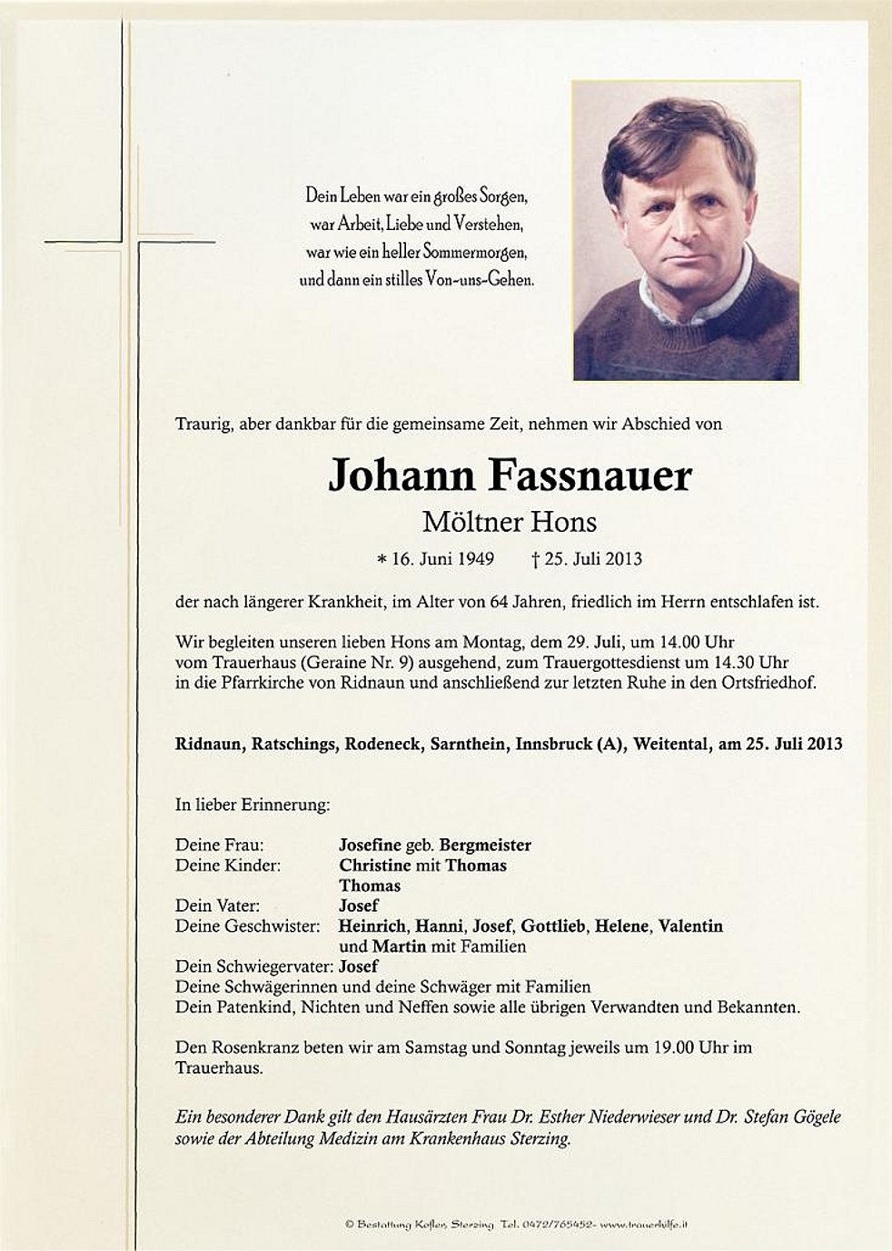 in die Pfarrkirche von Ridnaun und anschließend zur letzten Ruhe in den Ortsfriedhof.