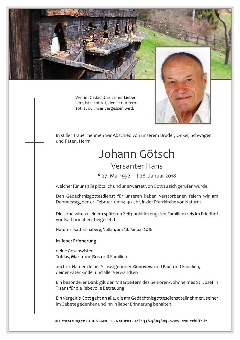Den Gedächtnisgottesdienst für unseren lieben Verstorbenen feiern wir am Donnerstag, den 01. Februar, um 14.30 Uhr, in der Pfarrkirche von Naturns.