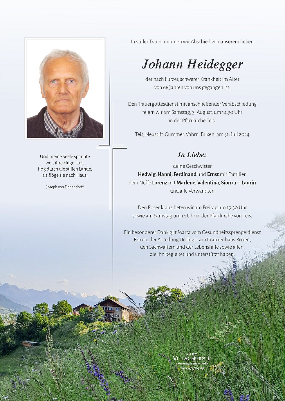 Begräbnisgottesdienst: 03.08. - 14:30 Uhr Teis