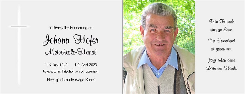Den Trauergottesdienst feiern wir am Dienstag, dem 11. April, um 14.30 Uhr in der Pfarrkirche von St. Lorenzen.