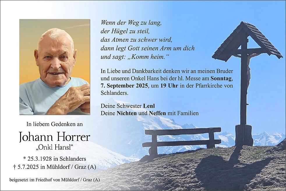 Gedächtnisgottesdienst: 07.09. - 19:00 Uhr Pfarrkirche Schlanders