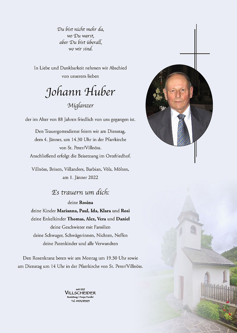 Begräbnisgottesdienst: 04.01. - 14:30 Uhr St. Peter/Villnöß