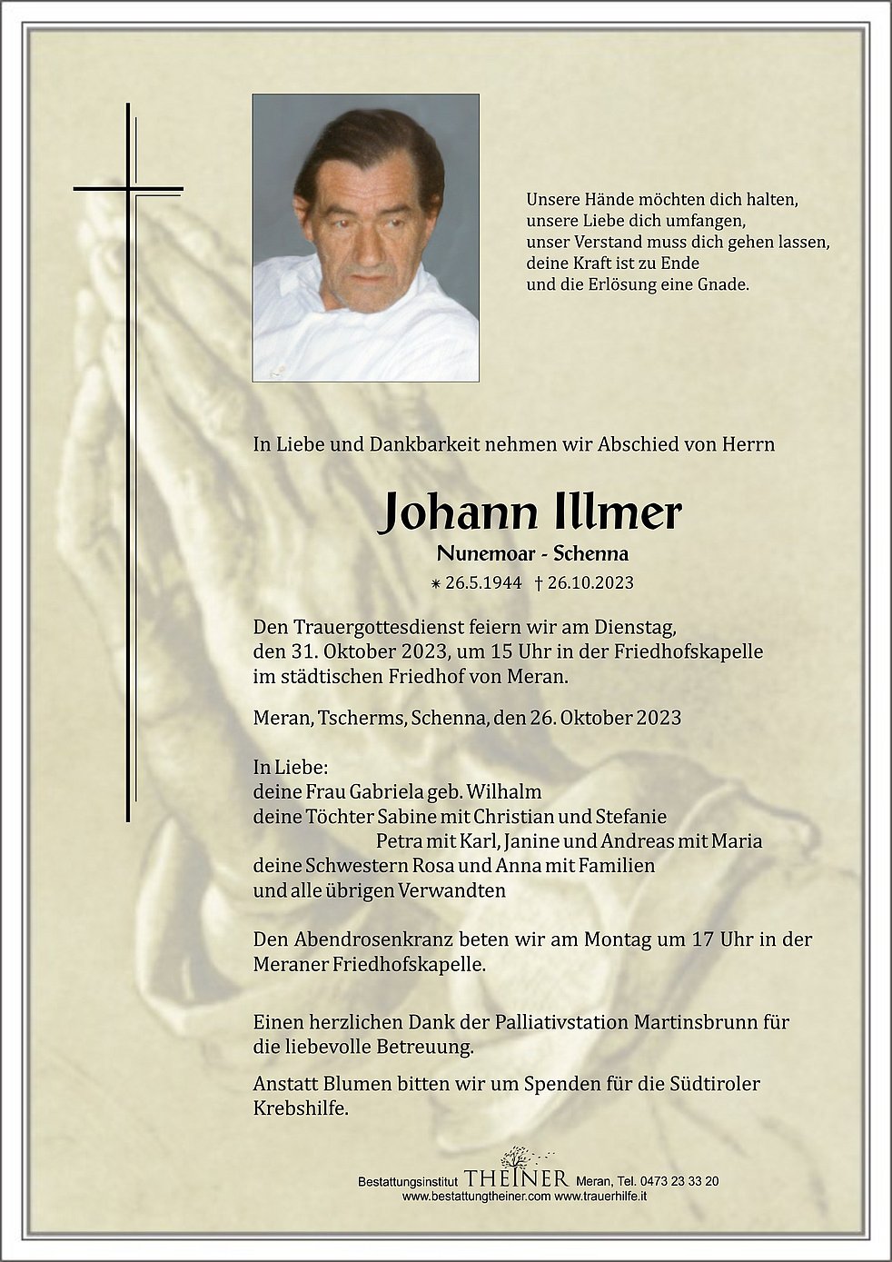 den 31. Oktober 2023, um 15 Uhr in der Friedhofskapelle im städtischen Friedhof von Meran.