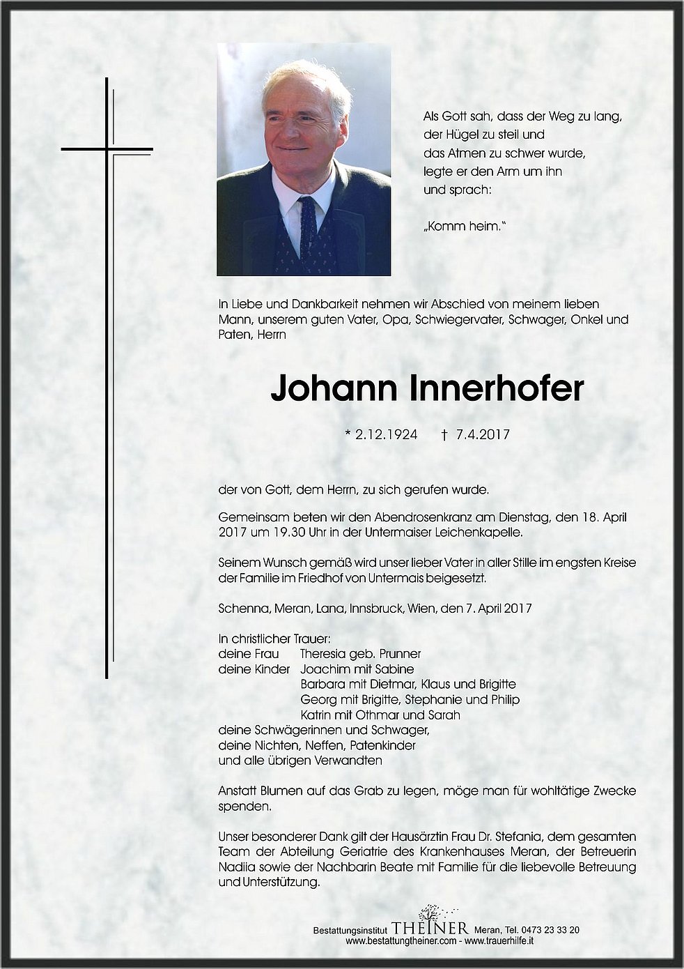Seinem Wunsch gemäß wird unser lieber Vater in aller Stille im engsten Kreise der Familie im Friedhof von Untermais beigesetzt.
