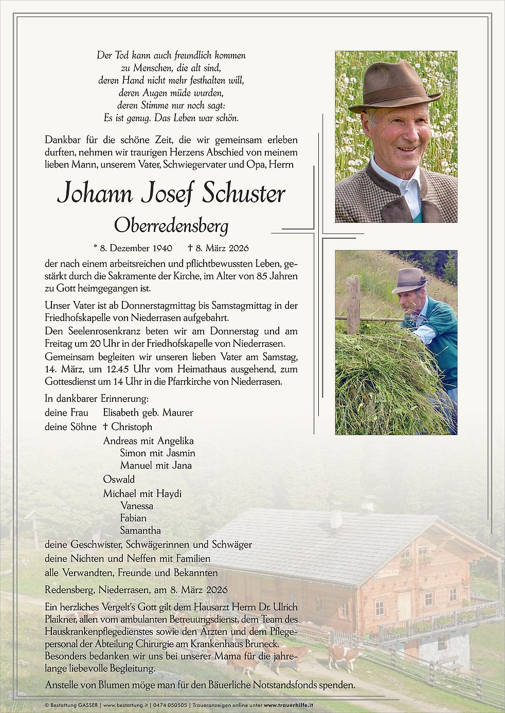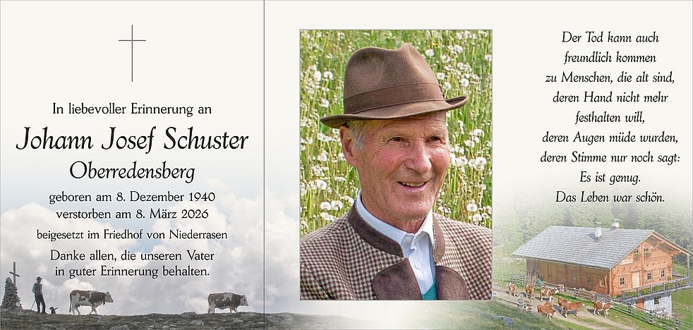Unser Vater ist ab Donnerstagmittag bis Samstagmittag in der Friedhofskapelle von Niederrasen aufgebahrt.