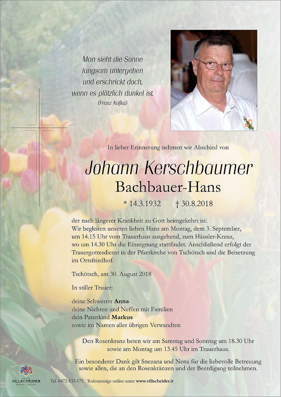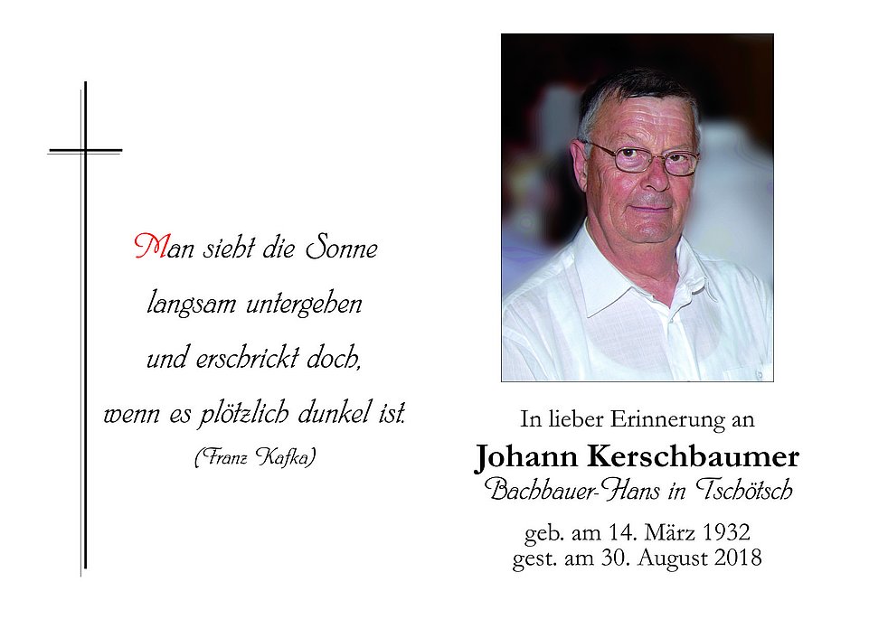 wo um 14.30 Uhr die Einsegnung stattfindet. Anschließend erfolgt der Trauergottesdienst in der Pfarrkirche von Tschötsch und die Beisetzung