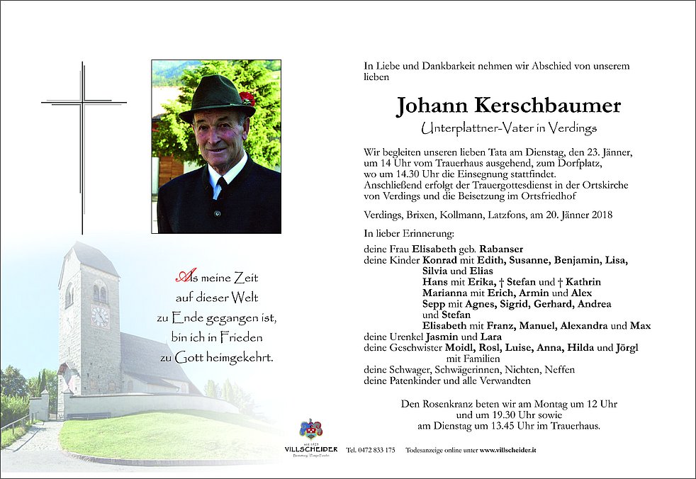 Wir begleiten unseren lieben Tata am Dienstag, den 23. Jänner,