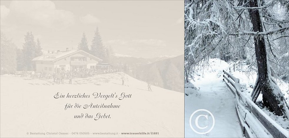 Ein besonderer Dank gilt dem Hausarzt Dr. Martin Vieider, Prof. Alfred Kocher (AKH Wien), den Sprengelschwestern sowie den Ärzten und dem gesamten Pflegepersonal der Abteilung Chirurgie am Krankenhaus Bruneck für die liebevolle Betreuung.