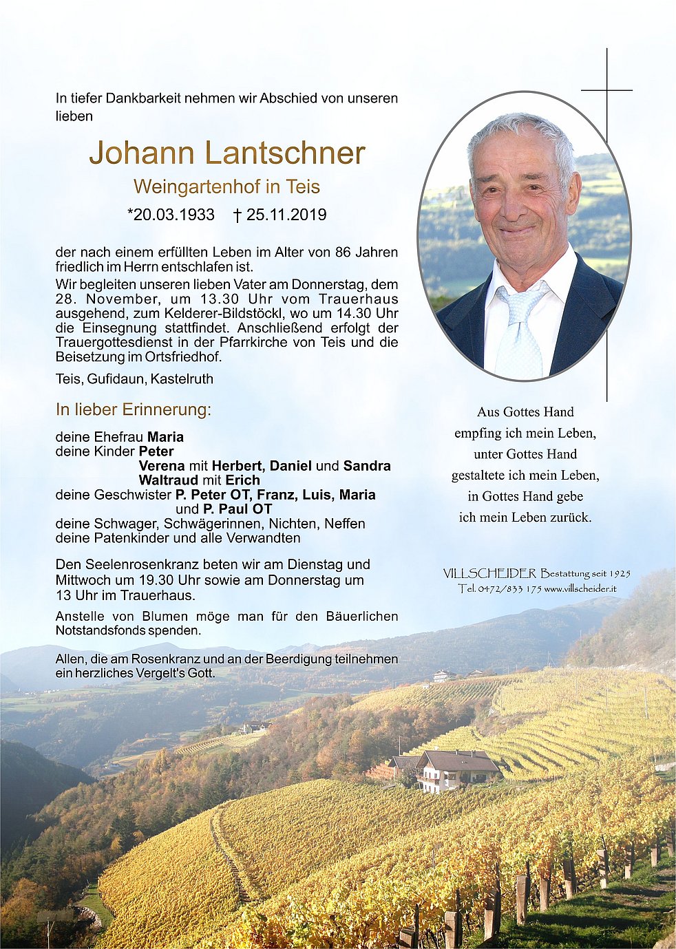 Begräbnisgottesdienst: 28.11. - 14:30 Uhr Teis