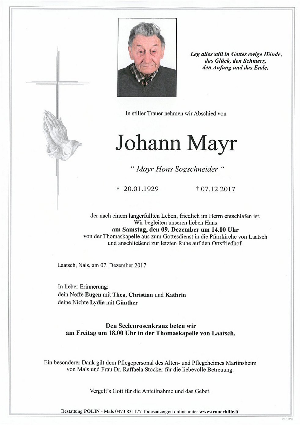 der nach einem langerfüllten Leben, friedlich im Herrn entschlafen ist.