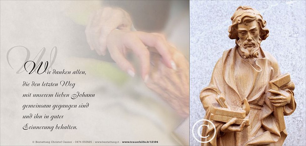 Ein besonderer Dank gilt dem gesamten Personal vom Altenheim Schloss Moos in Wiesen/Pfitsch für die liebevolle Betreuung und Begleitung sowie allen, die mit ihm Zeit verbracht haben.