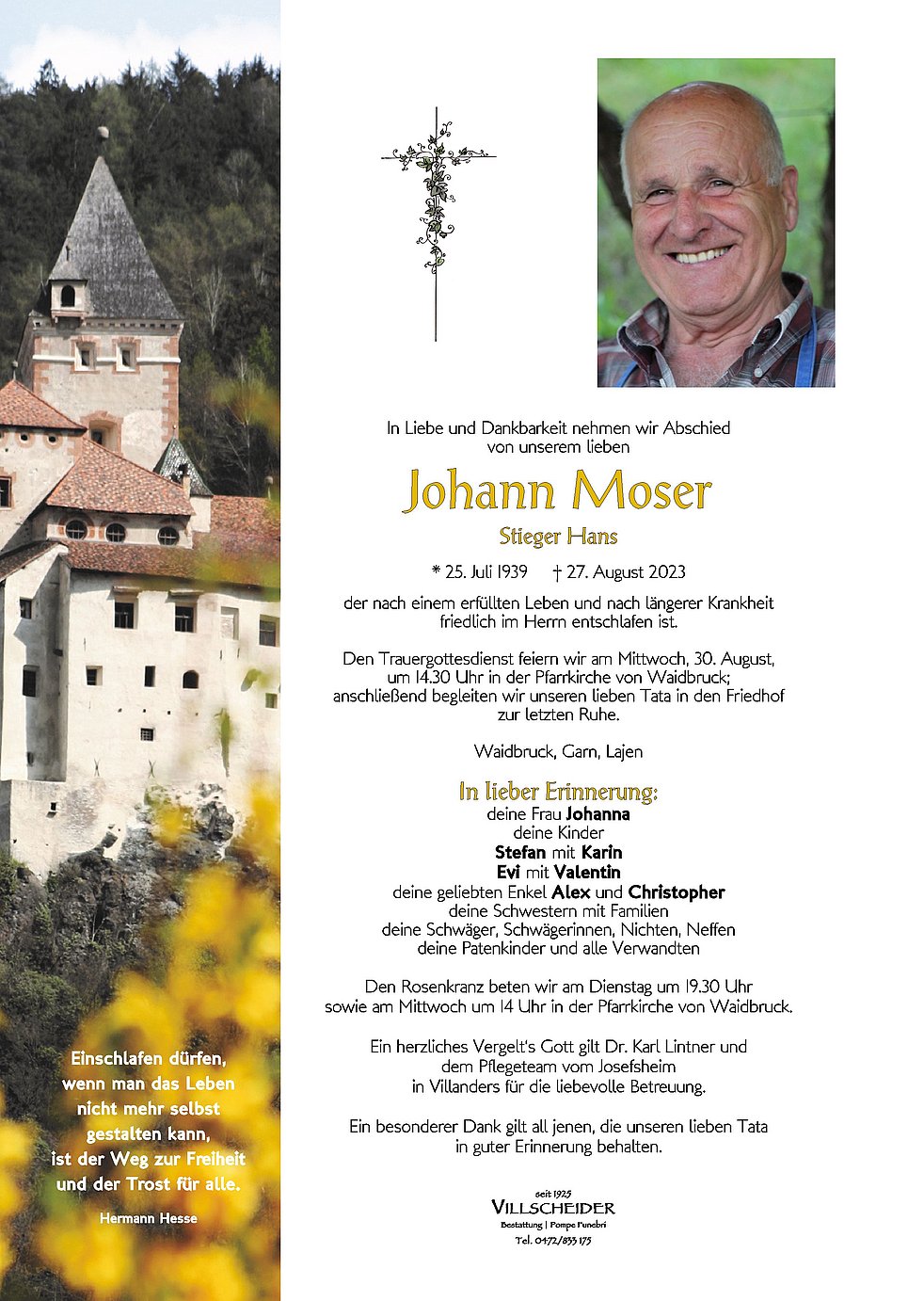 Trauerfeier: 30.08. - 14:30 Uhr Waidbruck