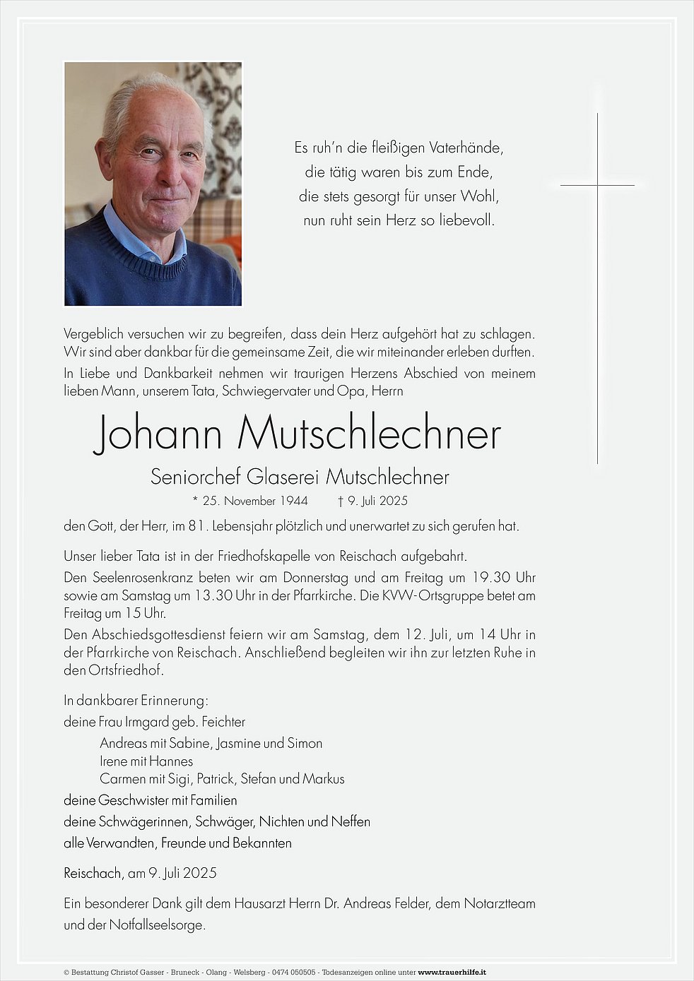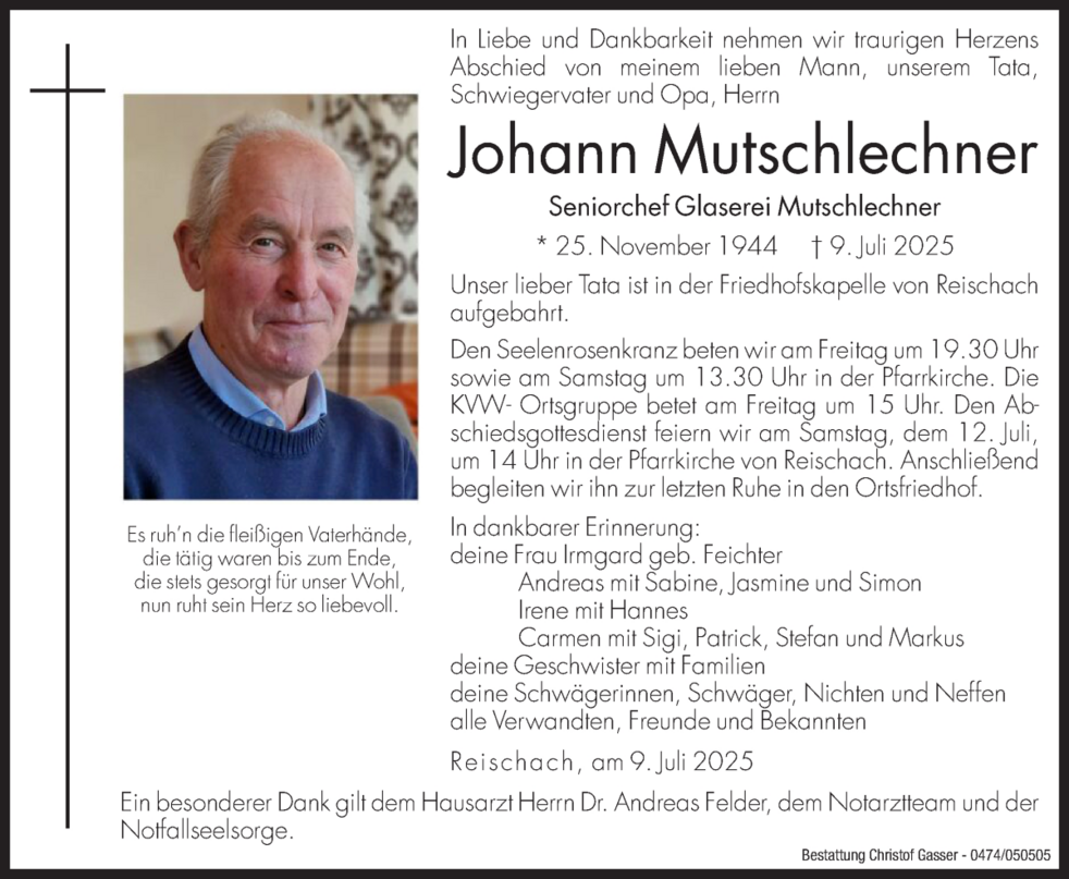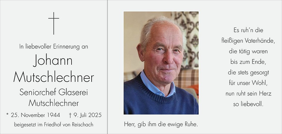 In Liebe und Dankbarkeit nehmen wir traurigen Herzens Abschied von meinem lieben Mann, unserem Tata, Schwiegervater und Opa, Herrn