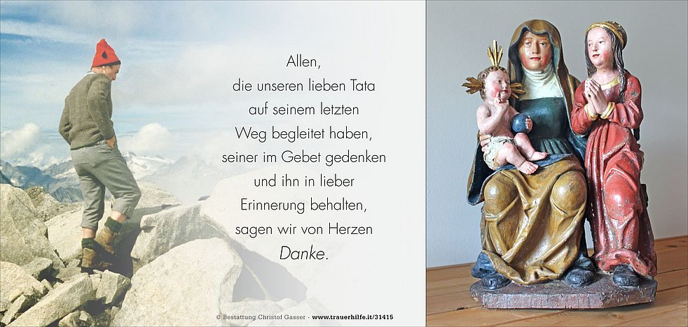 Ein besonderer Dank gilt dem Hausarzt Herrn Dr. Andreas Felder, dem Notarztteam und der Notfallseelsorge.