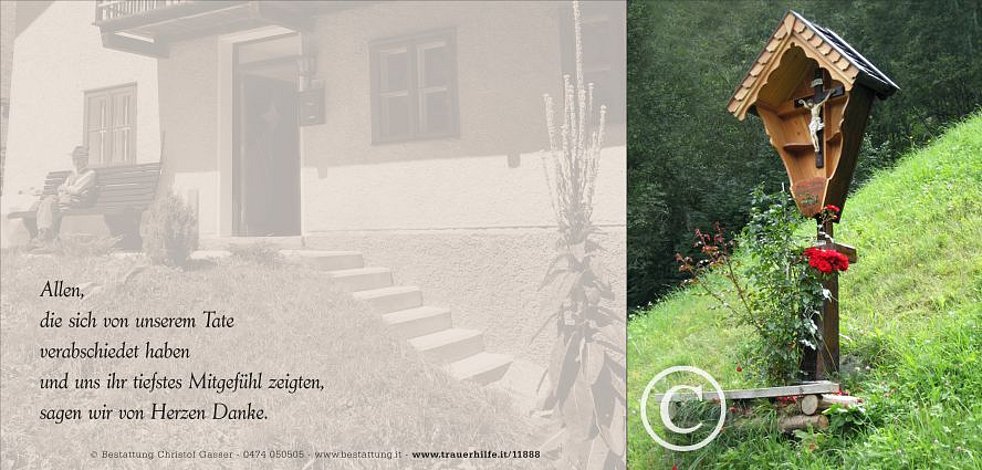 Ein besonderer Dank gilt dem gesamten Personal von der Langzeitpflege vom Wohn- und Pflegeheim Bruneck für die liebevolle Betreuung und Begleitung.