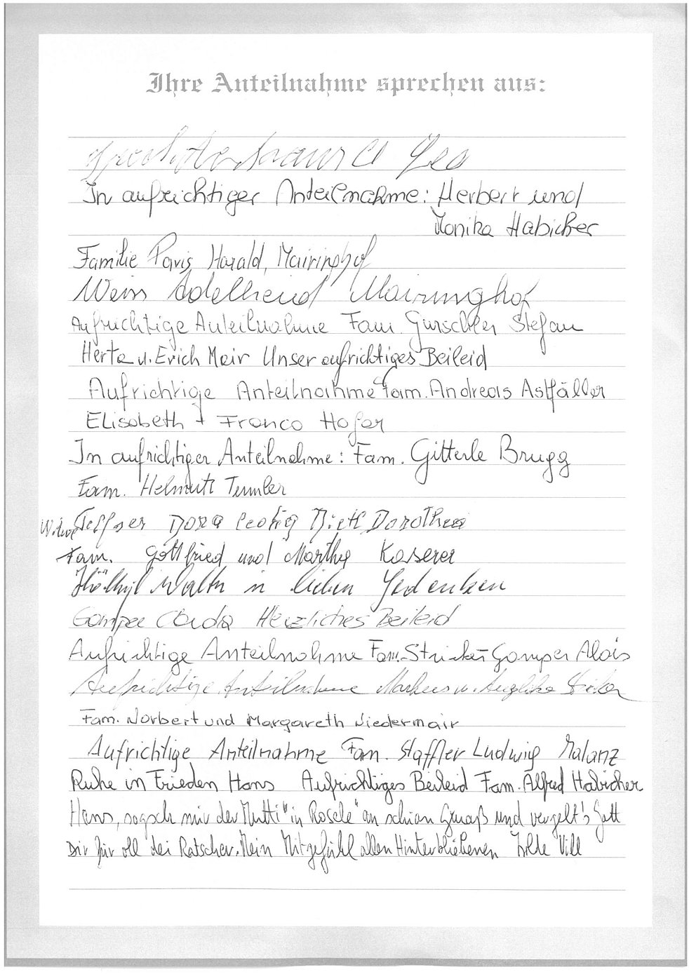 Allen, die an den Seelenrosenkränzen und an der Beerdigung teilnehmen, ein recht herzliches Vergelt’s Gott.